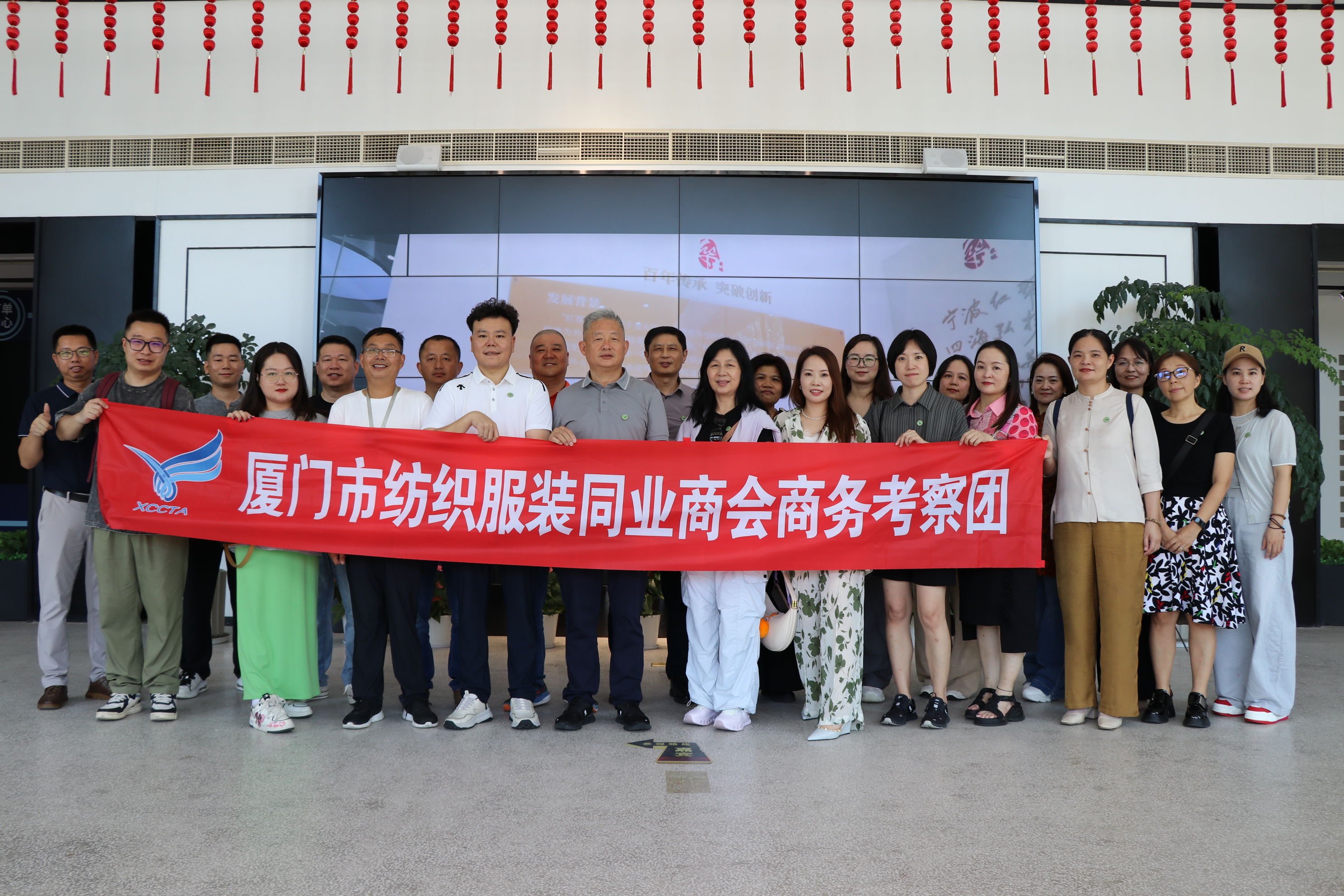 2025.08.25八月的甬城,热浪翻滚,却挡不住一场跨越山海的专业交流。8月25日,嘉乐智尚国际服装产业园迎来了一批特殊的客人——由厦门市纺织服装同业商会20余位企业家组成的考察团,在宁波市服装协会的带领下,开启了为期四天的浙江知名服装企业参观学习之旅。